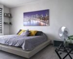 una recámara secundaria con cama matrimonial y clóset