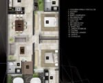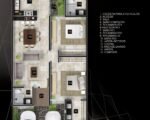 La casa de una planta, tiene una construcción proyectada de 120m2, con dos cajones de estacionamiento, sala, comedor, dos o tres baños completos, 2 o 3 recámaras, la principal con vestidor; área de lavandería con boiler instantáneo, instalación para la unidad de lavado y secado; jardín interior.