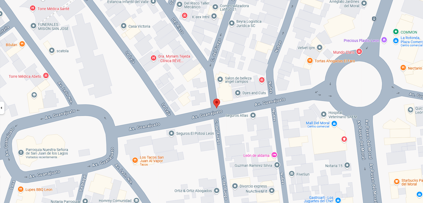 Templo Jardines del Moral, Plaza Mayor, Boulevard Campestre, Clínica Médica León, Farmacias Guadalajara.