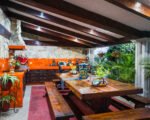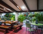 • Jardín con terraza techada, asador, mesa de parota y bancas con vista al jardín